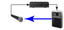Microphone proximity relative to the loudspeakers is very important. The closer a microphone is to the loudspeaker, the easier it is to have acoustic feedback. If the microphone is placed directly in front of the speaker, then the likelihood of acoustic feedback increases greatly. The greater the separation between the microphone and the speaker, the less the likelihood of acoustic feedback.